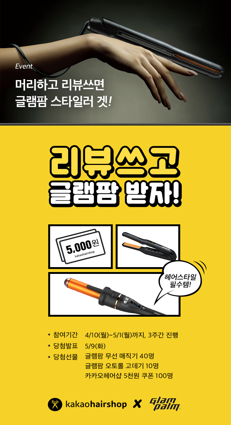 꽃놀이 가기 좋은 4월,카카오헤어샵에서 머리도 하고,멋진 헤어스타일도 낼 수 있는 글램팜 뷰티 아이템도 받아가세요!